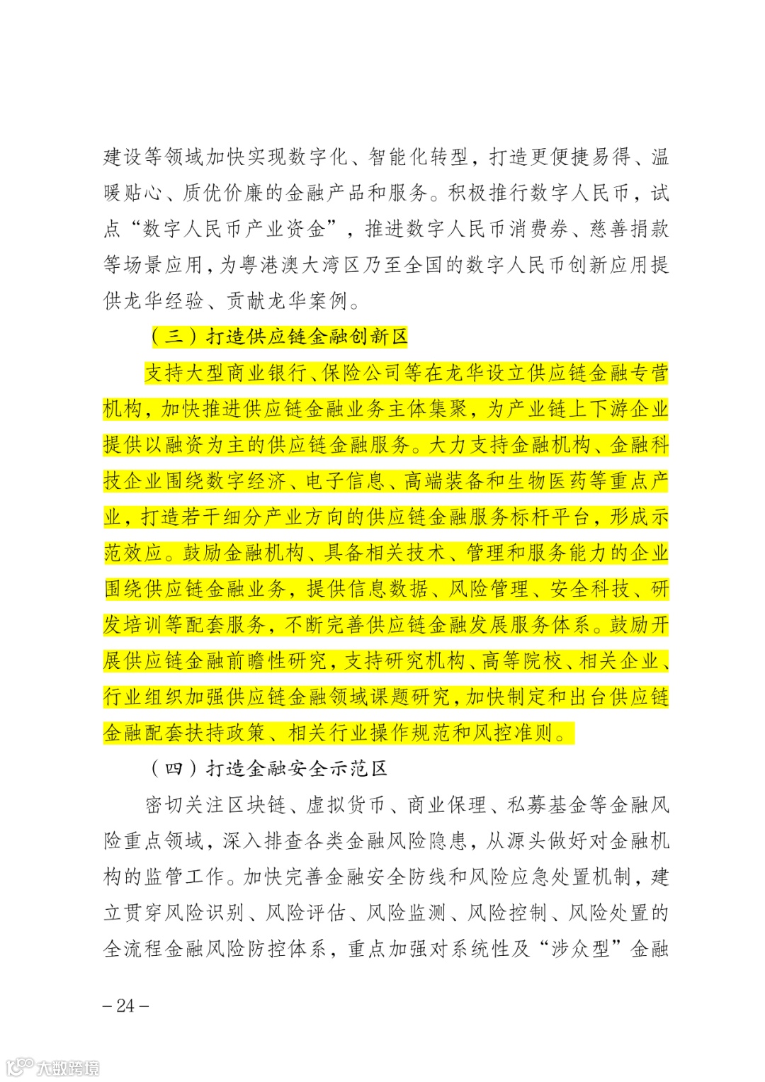 在打造供应链金融创新区上,《规划》提出,支持大型商业银行、保险公司等在龙华设立供应链金融专营机构,加快推进供应链金融业务主体集聚,为产业链上下游企业提供以融资为主的供应链金融服务。