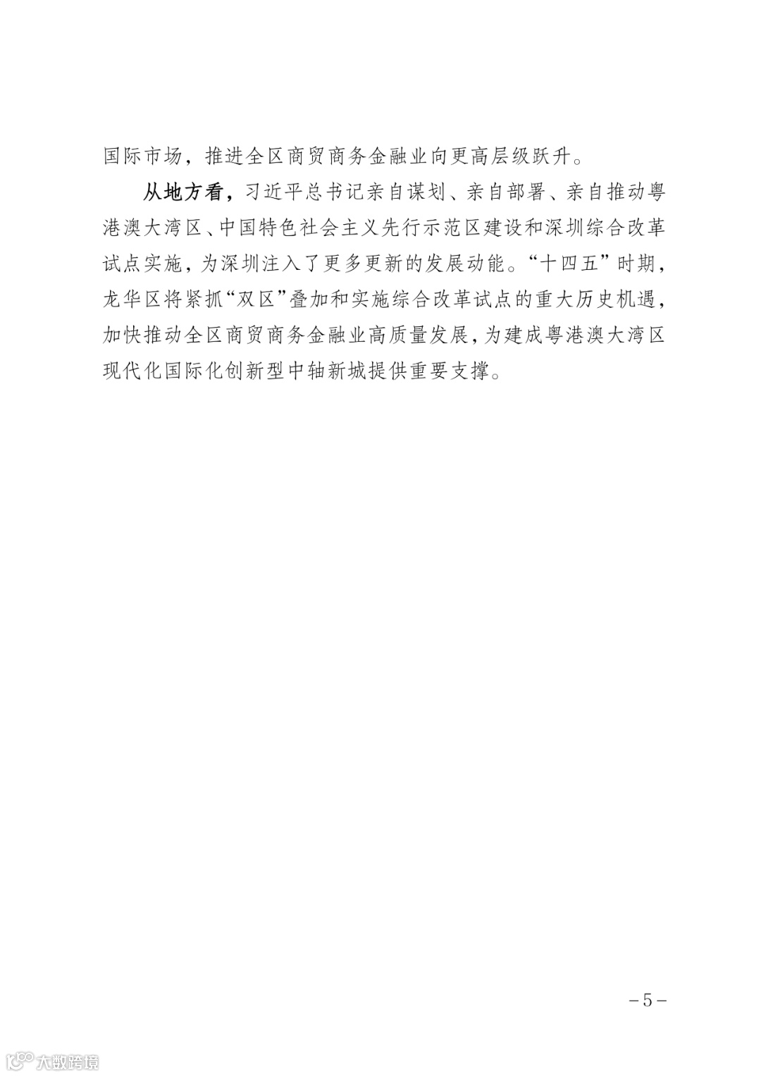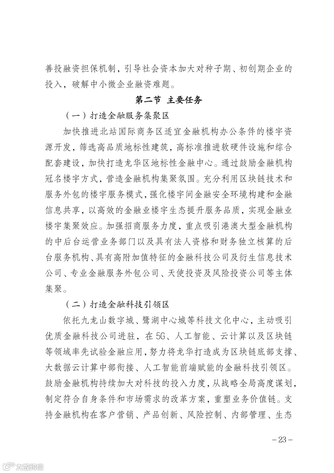 近日,深圳市龙华区工业和信息化局印发 《深圳市龙华区商贸商务金融业发展“十四五”规划》(以下简称“规划”)。《规划》提出,聚焦产业与金融融合发展,加快推进区域性知识产权金融服务平台和普惠金融服务平台建设,以打造金融服务集聚区、金融科技引领区、供应链金融创新区和金融安全示范区四大特色金融区为主要任务,不断提升金融服务实体经济功能,打造“产融结合示范区”。