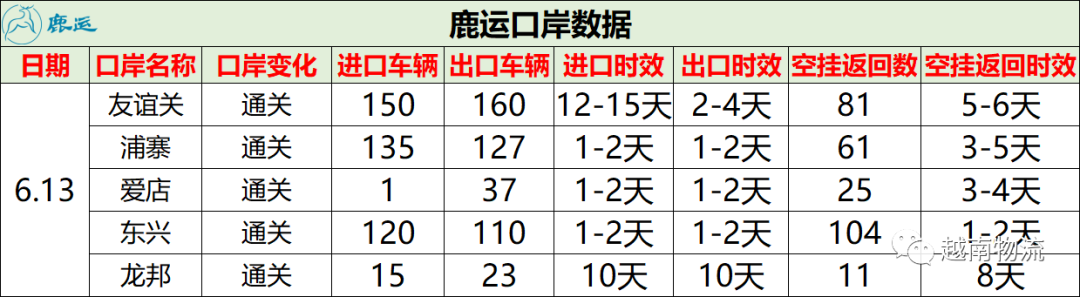 昨天,从越南返回友谊关的空挂车81辆,返回的是6月9-10日的,挂车返回时效需要5-6天。