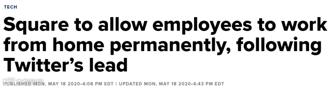 除了Facebook以外,Twitter Inc.和Square Inc.这两家公司已经宣布,如果员工愿意,他们可以永久在家工作。