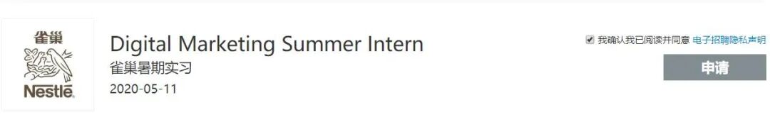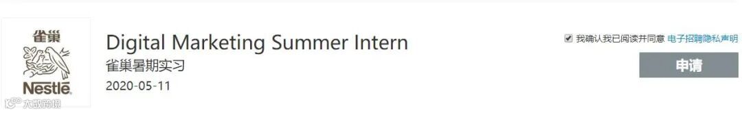 雀巢Digital Marketing暑期实习也仍在开放。