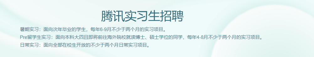 腾讯面向在校生开放日常实习正在招聘,职位包括营销、商业分析、交互设计、市场研究等岗位。