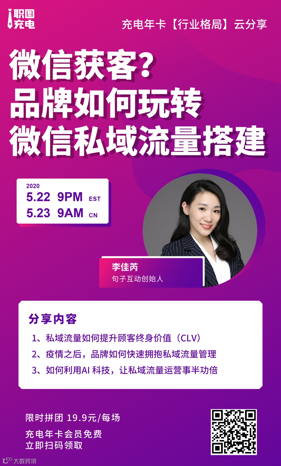 今天职图充电官为大家展示了在科技的帮助下,私域流量发展的更多的方式。而在各行各业深受疫情的当下,私域流量如何更大的发挥出优势呢,想要知道答案,扫码关注职图充电官参与最新的云分享吧!