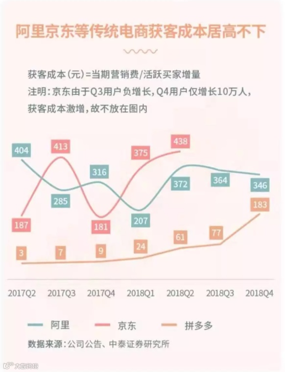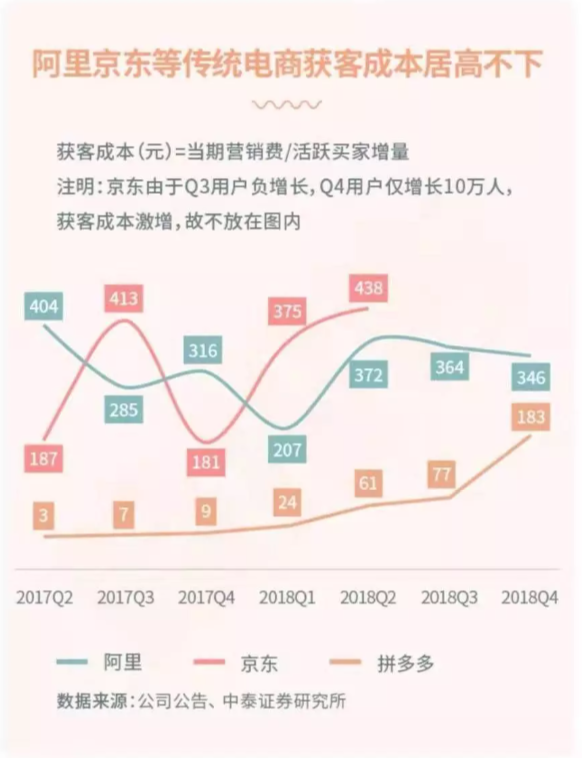 京东前有持有移动支付庞大真实钱包用户量的老大哥阿里巴巴,后有4.83亿活跃用户的拼多多,缺乏阿里巴巴那样的线上生态布局的生态获客成本高居不下,这种情况下,京东选择以微信里的私域流量作为突破口。