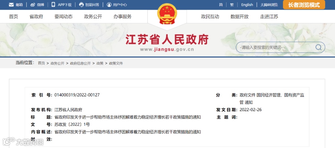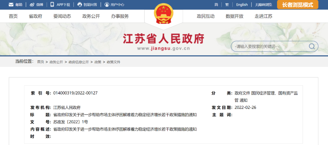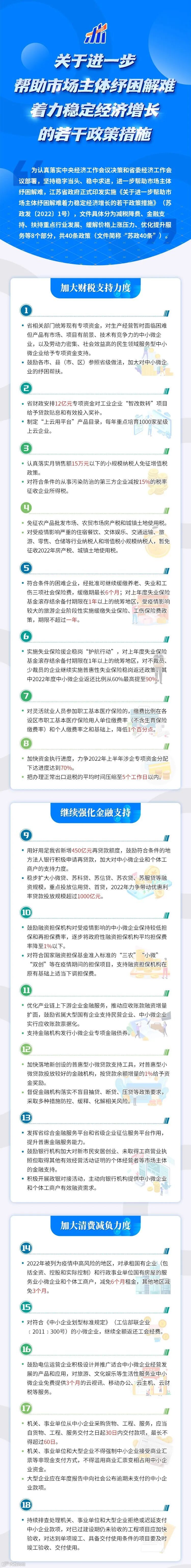 近日,江苏省人民政府印发《关于进一步帮助市场主体纾困解难着力稳定经济增长的若干政策措施》(以下简称“措施”)。