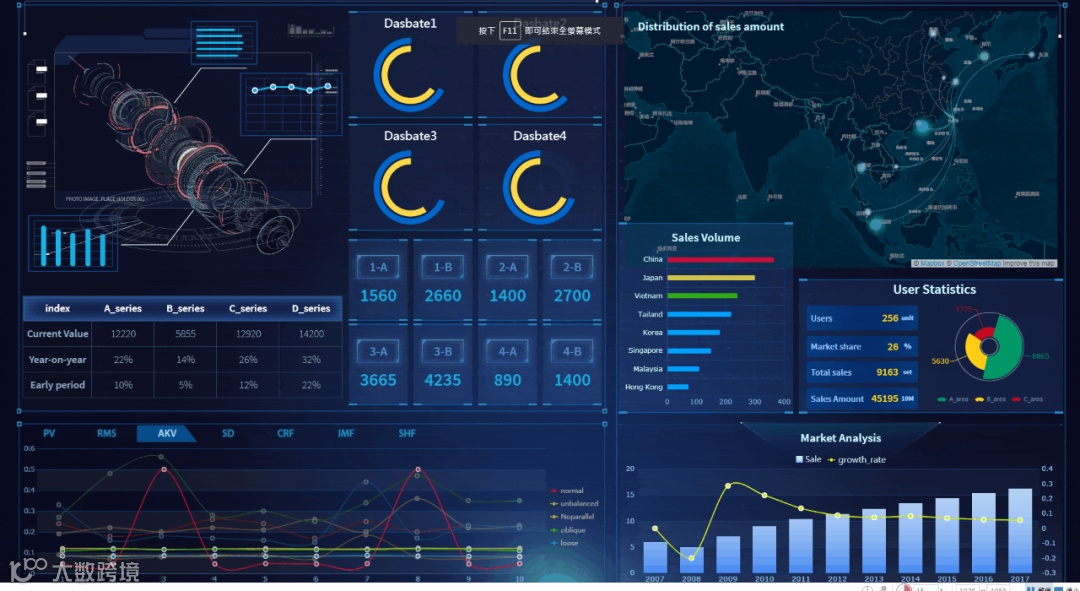 数据可视化能力(讲故事能力):除了简单的堆砌华丽图表,还要尽量让其能够产生交互性,并能“叙述”故事主线。