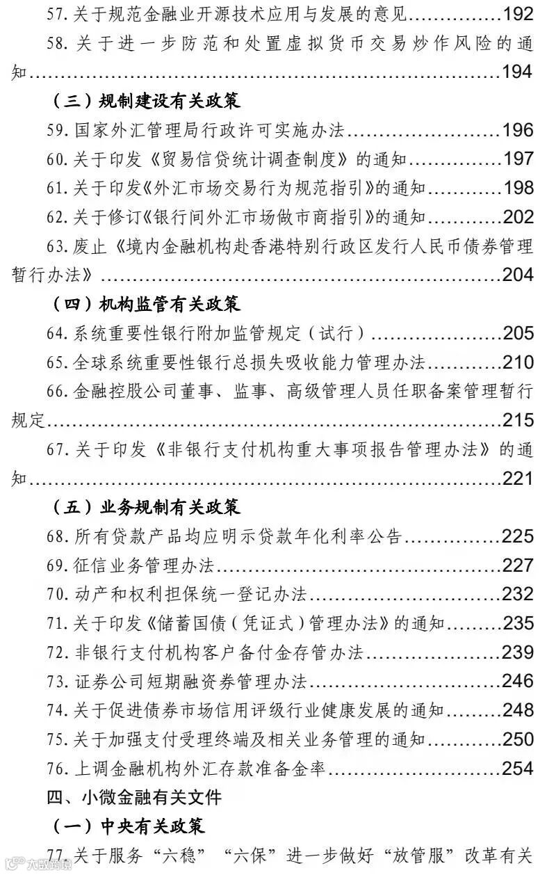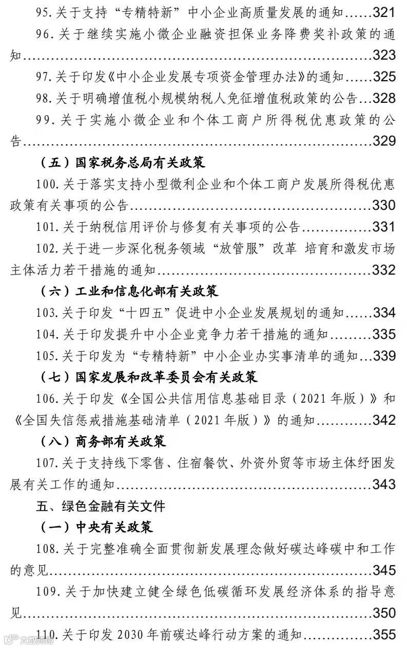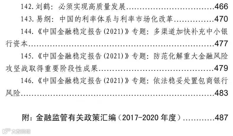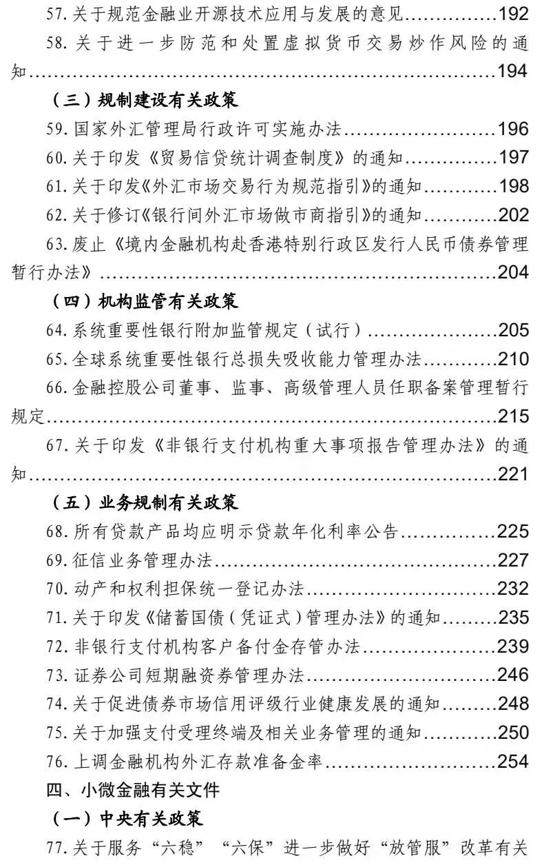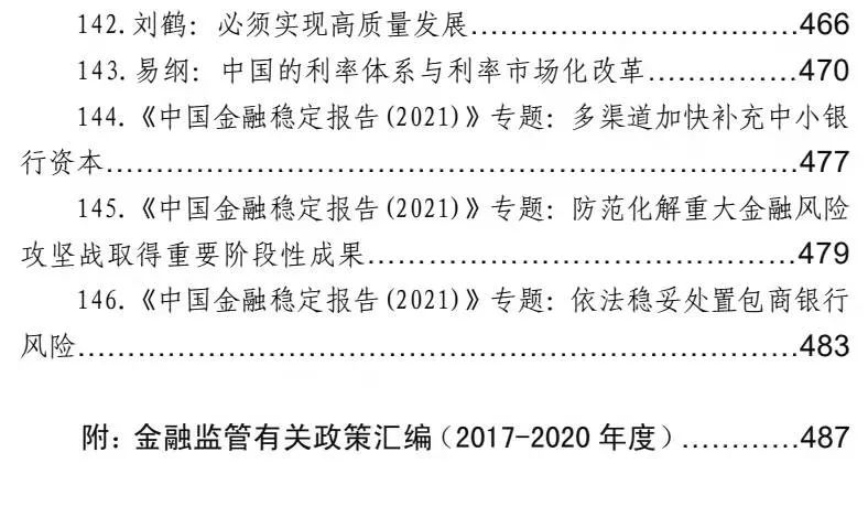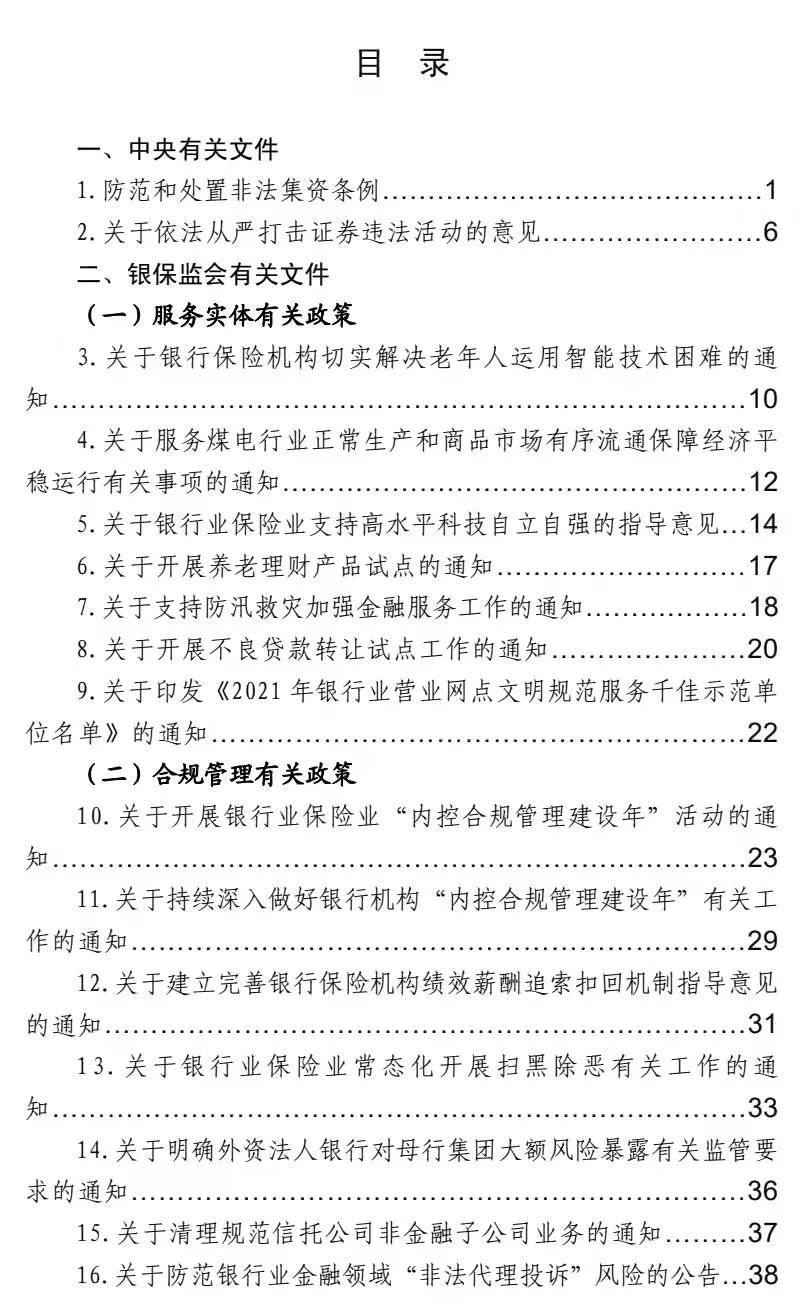 与此同时,结合经济社会和金融行业热点问题,《金融监管有关政策汇编(2021年度)》创新设置了小微金融、绿色金融、金融服务乡村振兴等3个政策专题。