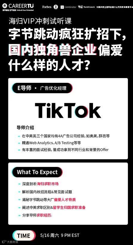 为了让小伙伴们顺利进入到字节跳动,我们专程邀请到字节跳动导师广告优化经理为大家分享,字节跳动疯狂扩招下更偏爱什么样的人才?