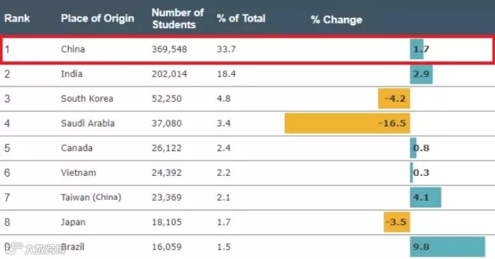 根据美国国际教育协会(Institute of International Education)所披露的数据,在2018-2019年,中国大陆留学生(就读于本科、研究生、博士等)在美国高校总人数为369, 548, 毕业后在美使用OPT人数为7万余人。但是成功申请到H-1B工作签证的中国留学生只有约1.7万人。