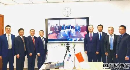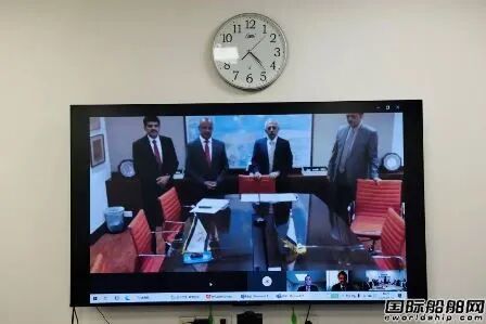 Chellship香港航运公司执行董事Mr. Vishal Khurana,苏美达船舶董事长何隽、副董事长徐钢、新大洋造船有限公司总经理徐斌等双方领导参加了视频连线签约仪式。