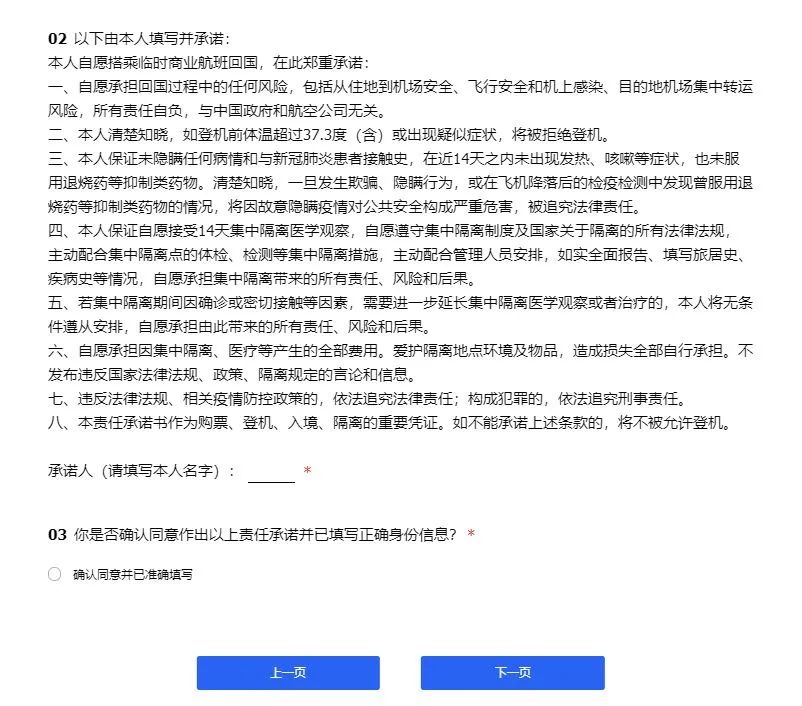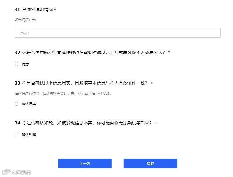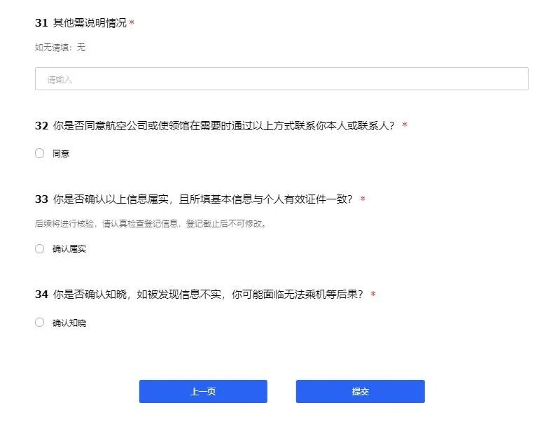 旅客未按要求填报的,将无法登机;填报虚假信息,将导致行程受阻,并须承担相应法律责任。26个国家包括:意大利、美国、西班牙、德国、伊朗、法国、韩国、瑞士、英国、荷兰、奥地利、比利时、挪威、葡萄牙、瑞典、澳大利亚、巴西、土耳其、马来西亚、丹麦、加拿大、以色列、捷克、爱尔兰、菲律宾、泰国