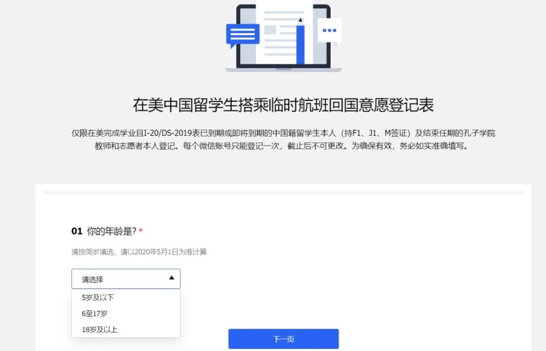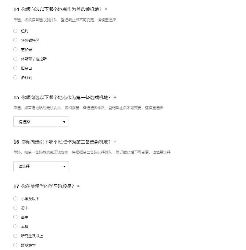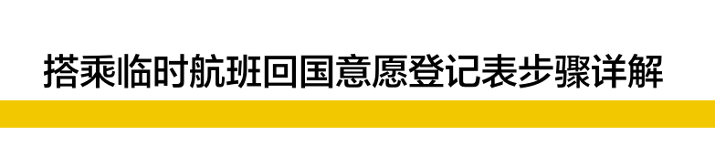 (一)请符合上述条件人员尽快通过微信登录链接,填写搭乘临时航班回国意愿登记表,截止时间为美东时间2020年5月11日早9点(北京时间5月11日21点),过期不补。