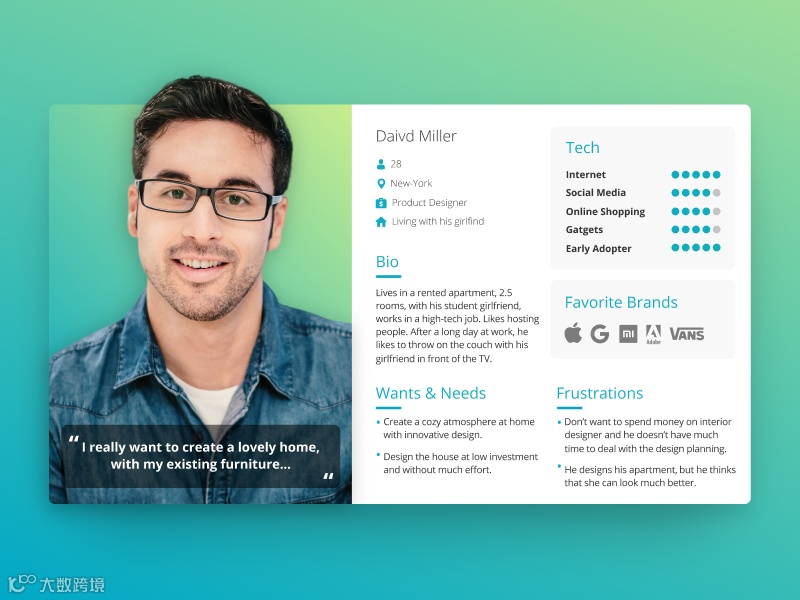 做好一份有针对性的Persona可以帮助你更好更快地做好一些设计决策,这就是User-Center(以客户为中心)的设计的中心主旨:一切为了用户!
