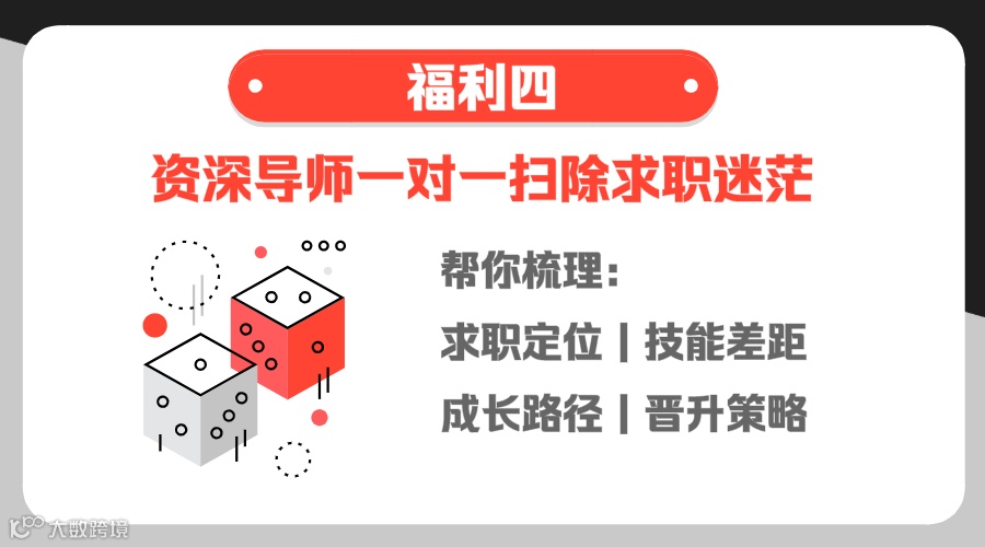 一对一课程,将由行业资深导师和同学一对一交流,帮助同学梳理求职优势和未来发展方向、晋升路线和提升策略。