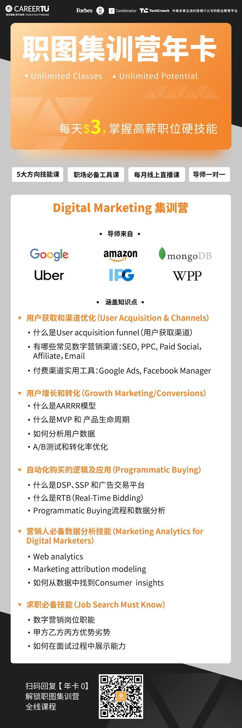 以上关于北美互联网科技热门岗位JD与相关技能要求的介绍,只是职图集训营年卡项目中的Agile求职课程一部分,更多精彩课程内容,每天$3购买集训营年卡会员即可解锁,现在购买更有机会享受30天免费权益!