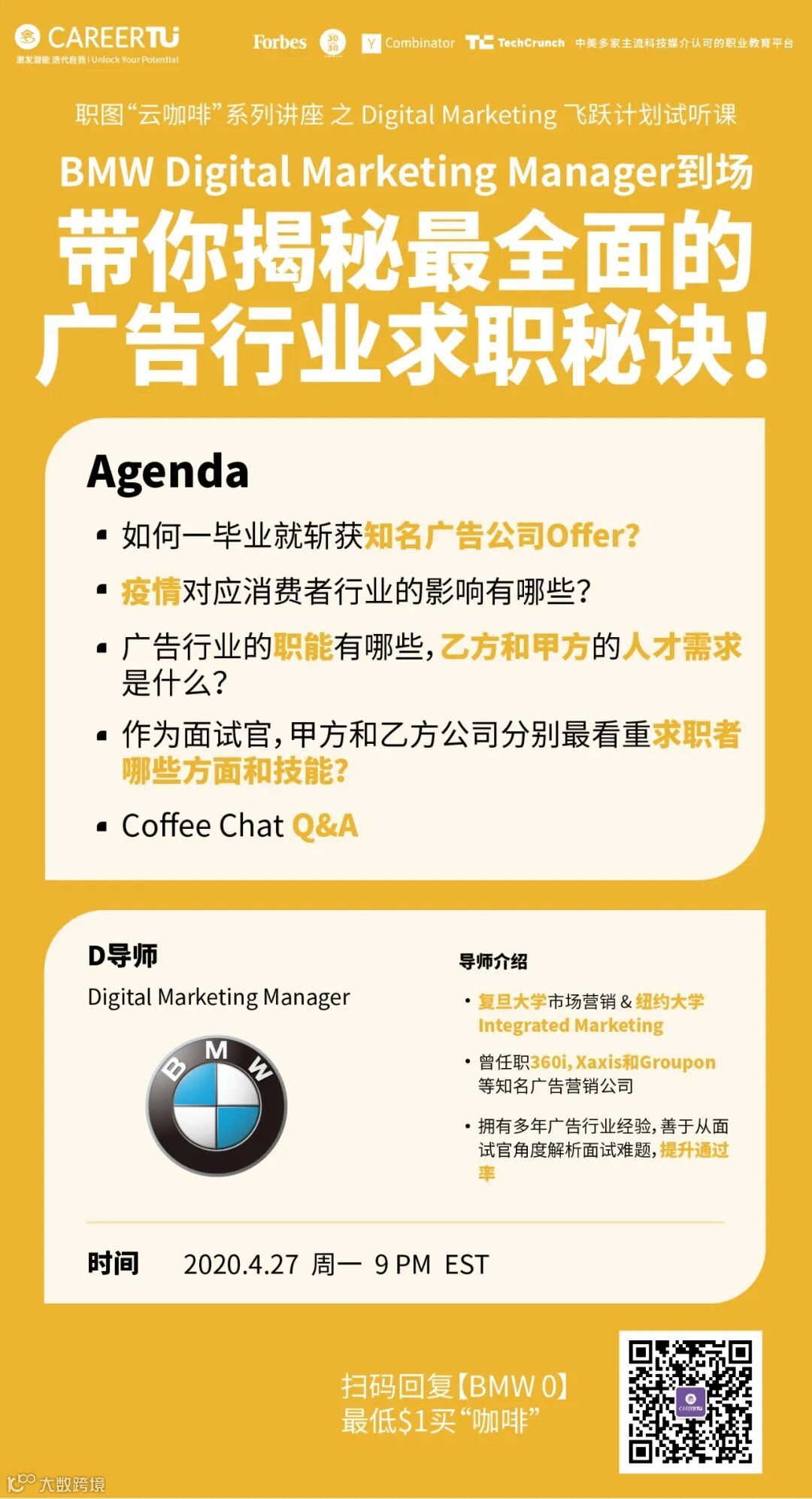对于刚刚毕业的应届生,广告公司(Agency)还是一个不错的求职方向。因为你能学习到很多行业知识,接触到许多大牌客户。并且广告公司的团队,整体比较年轻,其中一员的你就有很多机会去领导一个项目的部分工作。代表乙方公司:宏盟集团(Omnicom Group),阳狮集团( Publicis Group)......