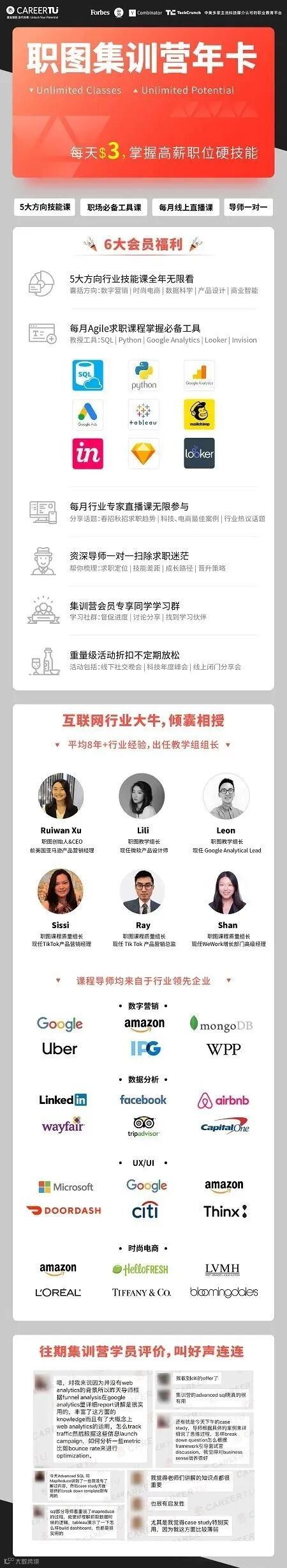 以上的Digital Marketing 工具,职图集训营年卡的求职Agile课程中已经上线了Google Analytics,Google search console,Mailchimp 课程,加入年卡会员就可以解锁哟!