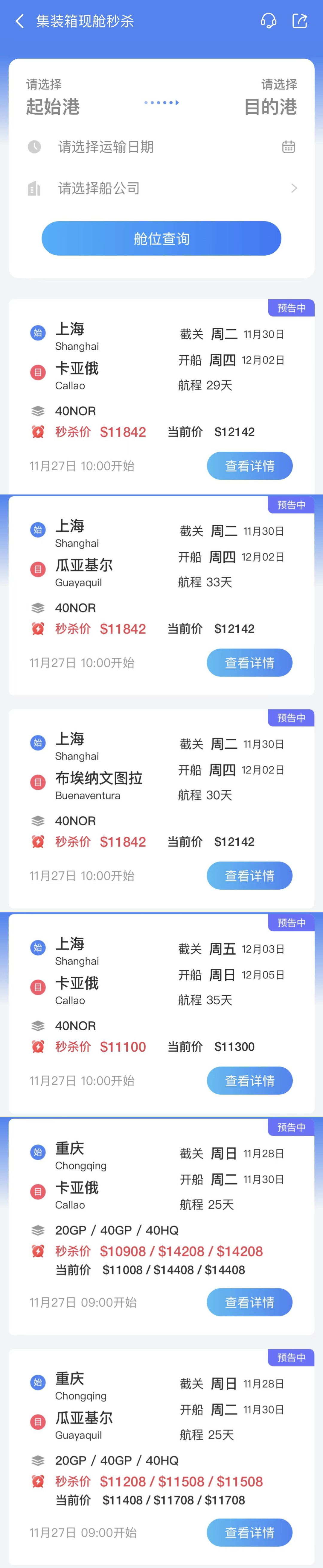 导读:11/27最新舱位秒杀信息!快下载APP查看!