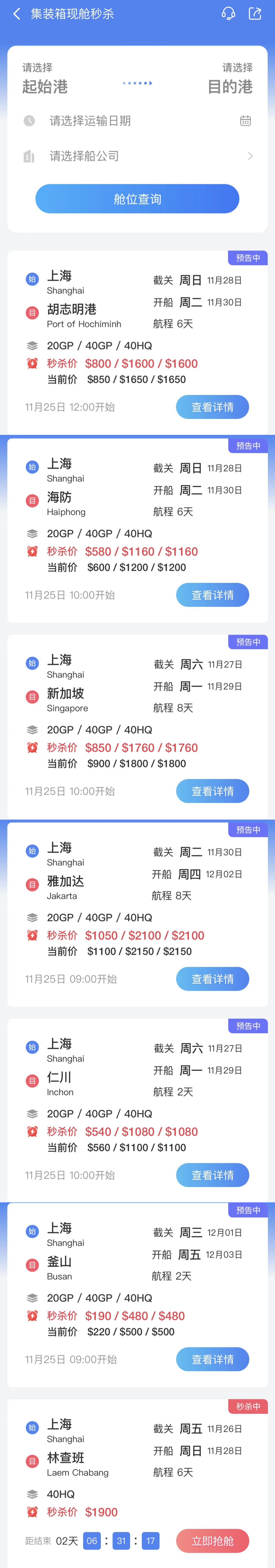 导读:11/25最新舱位秒杀信息!快下载APP查看!