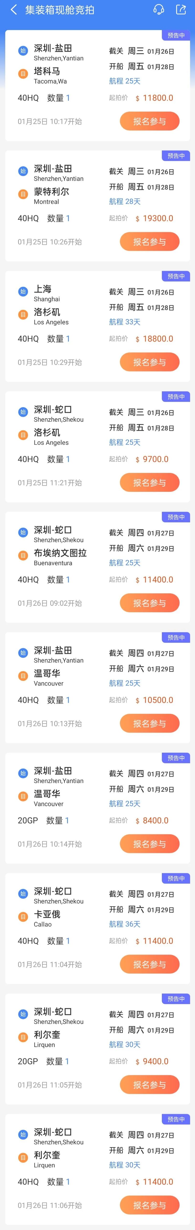 导读:1/25最新舱位竞拍信息!快下载APP查看!