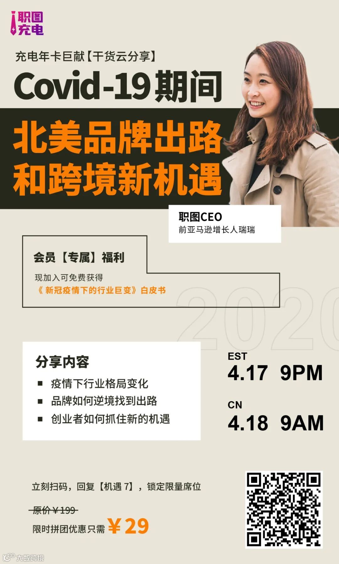 隔离在家? 消费降级? 漫天疫情新闻心烦意乱? 职图研究院巨献 - 特殊时期对B2C品牌影响和行业机遇,约见职图CEO,前亚马逊增长人,超干货分享,帮你看清前景。