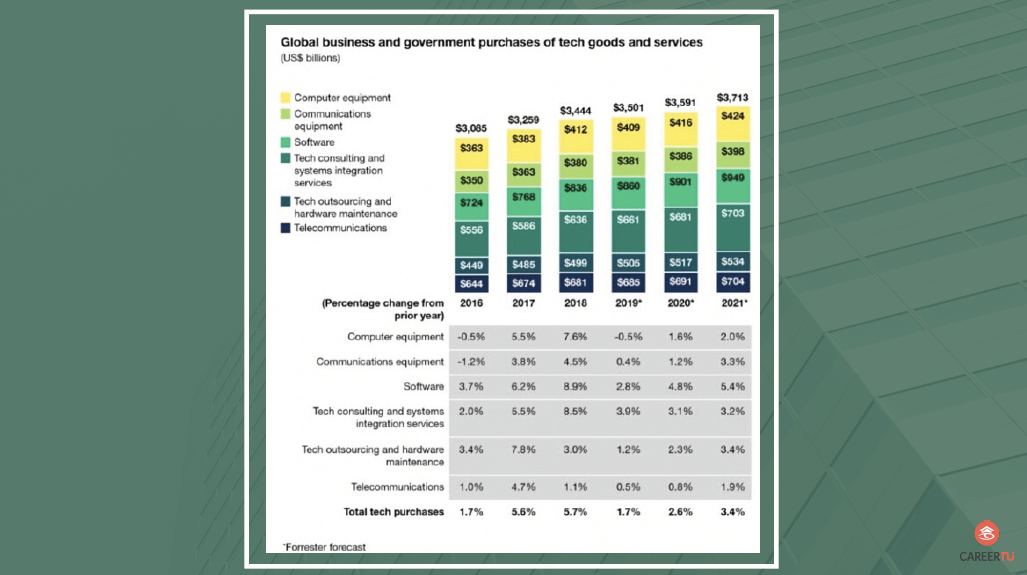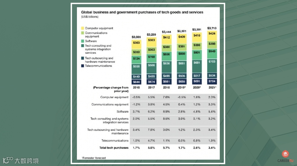 2020年科技市场下滑可能性⾼达50%,预计2021年全球科技市场增⻓将下滑⾄3%。