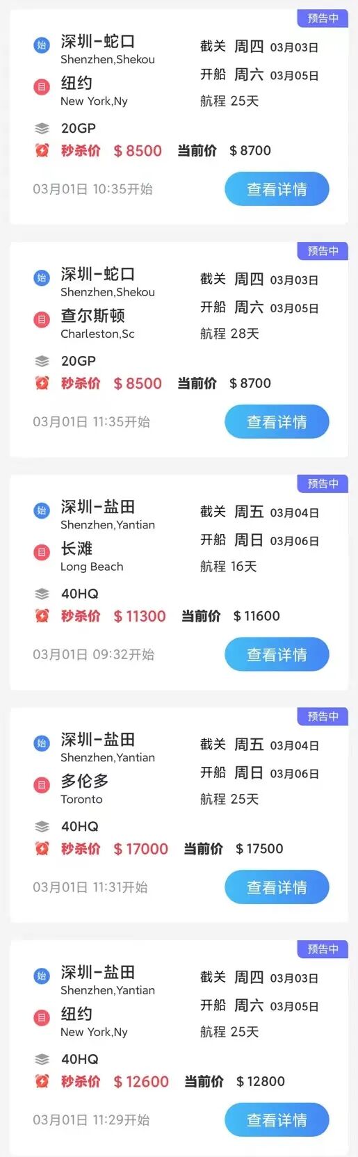 3/1最新舱位秒杀一览