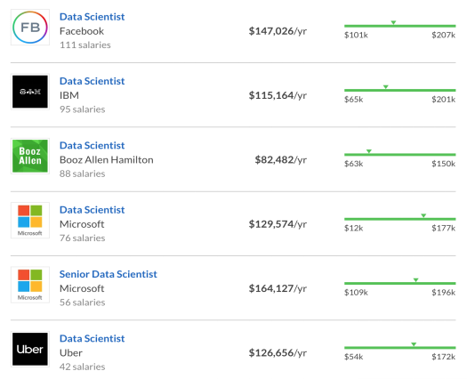 如果是一线科技公司的数据科学家,$150k甚至接近$200k的年收入亦不在话下。