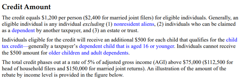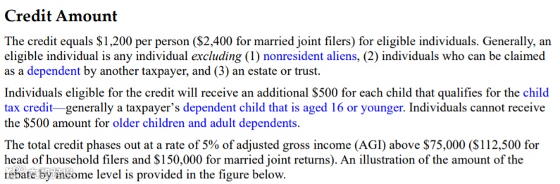 那么这笔$1200的补助金,到底符合什么条件才能领取呢?根据congress.gov上Congressional Research Service提供的Report来看:
