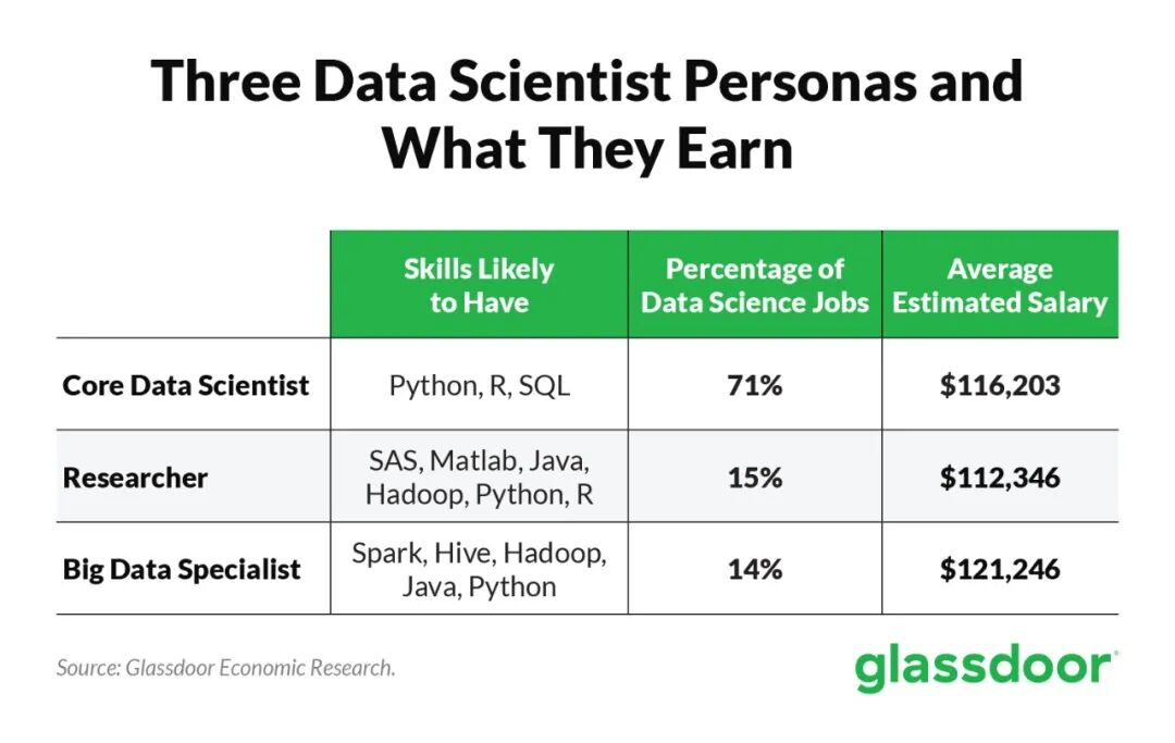 另外,我们继续看一看以下这三种Data Scientist的职业和他们的收入: