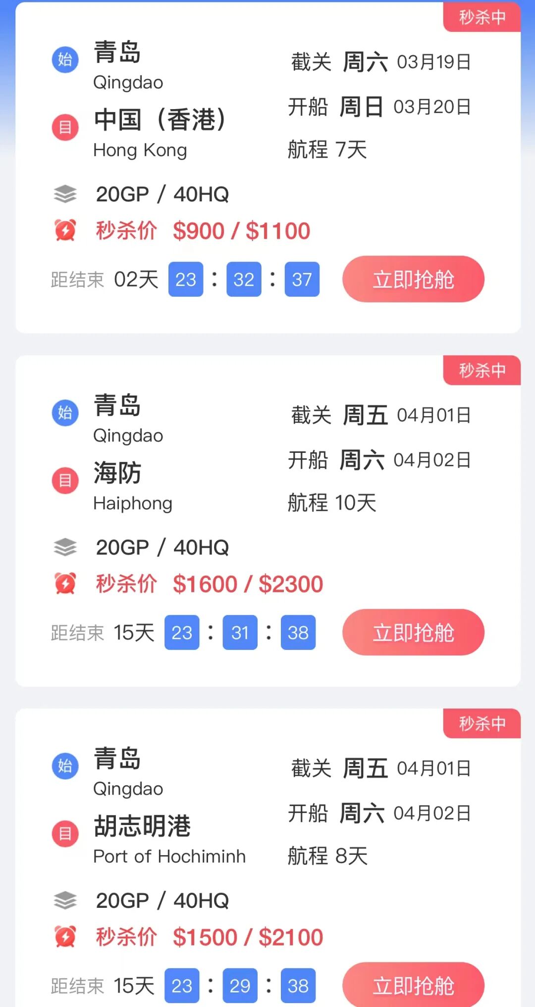 导读:3/16最新舱位秒杀信息!快下载APP查看!