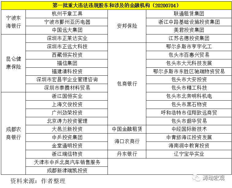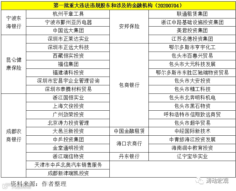 (一)第一批(20200704):38家重大违法违规股东涉及8家金融机构