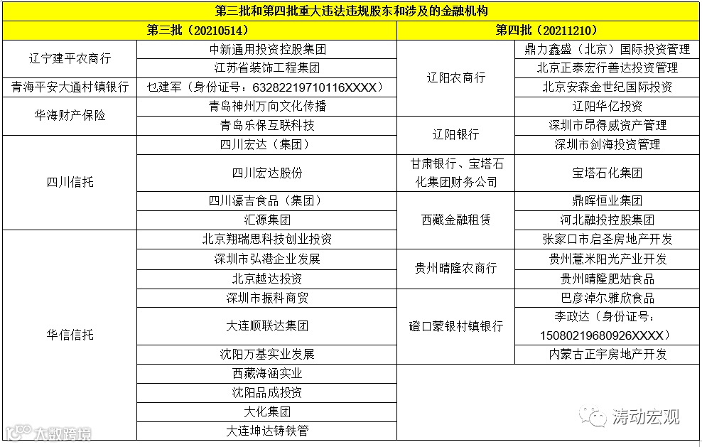 (四)第四批(20211210):15家重大违法违规股东涉及6家金融机构