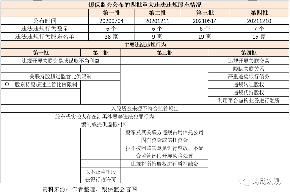 一、银保监会已披露四批重大违法违规股东名单,并将持续披露