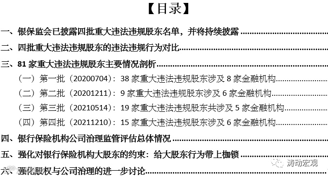 (一)2021年12月10日(周五),银保监会官网披露15家重大违法违规股东名单(包括14家企业股东和1位自然人股东),这是银保监会第四次披露重大违法违规股东名单,也意味着自2020年7月首次披露以来,银保监会已建立了违法违规股东公开常态化机制。