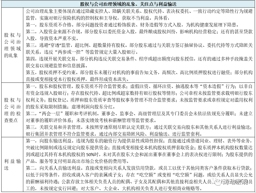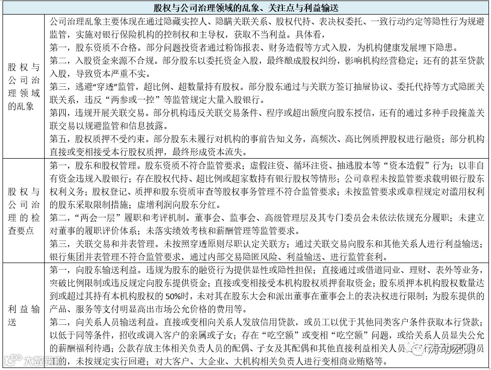 (六)股权与公司治理乱象频出,我们将监管部门的关注点汇总如下: