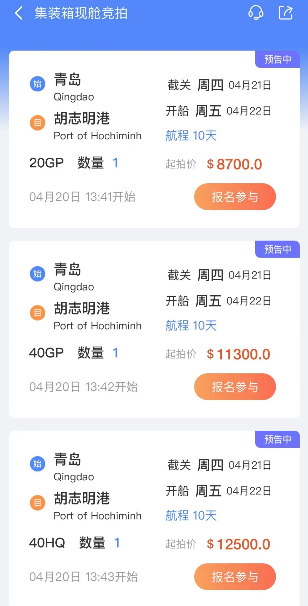 导读:4/20最新舱位竞拍信息!快下载APP查看!
