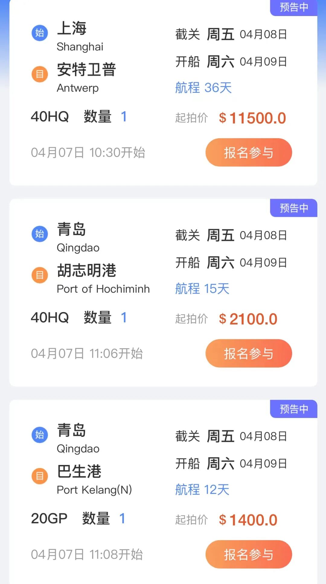 导读:4/7最新舱位竞拍信息!快下载APP查看!