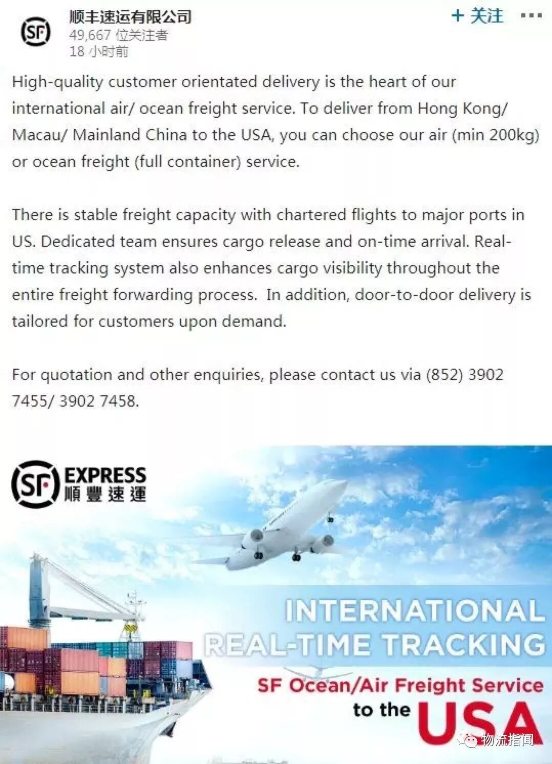近日,顺丰控股官方发布公告称,进军国际空运/海运货运市场,首先提供的是从香港/澳门/中国内地启运至美国的海运(整箱)和空运(200公斤起)服务。此举被业内认为是顺丰入局国际海运市场的重要信号。