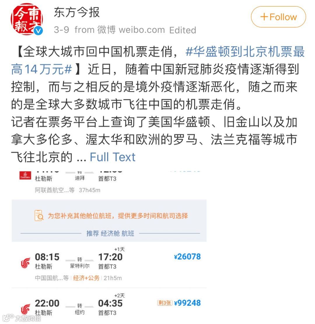 新冠病毒在美国越发严重,能飞可飞的行程正在越来越少、越来越贵(某网站三月临时出发十万多的天价机票上了新闻)。