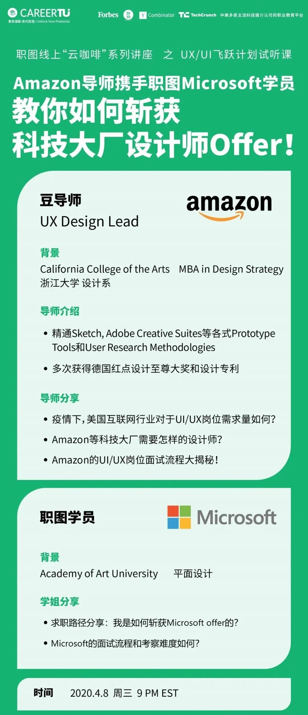 讲座丨Amazon导师携手Microsoft学姐,教你斩获大厂UI/UX Offer!