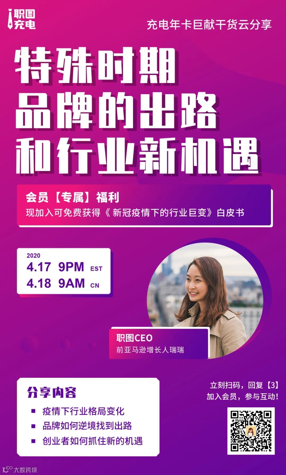 此次疫情下的众生百态引发了职场人更多的思考,哪些行业经受住了这一次的考验,而哪些行业因为这一次的“黑天鹅”事件而大受打击?在此次疫情之下,各个行业又该如何寻求新的出路,找到下一个风口?创业者又该如何在这危机四伏中抓住潜在的机遇?美东时间4月17日晚9点,职图创始人瑞瑞带你一一揭秘。