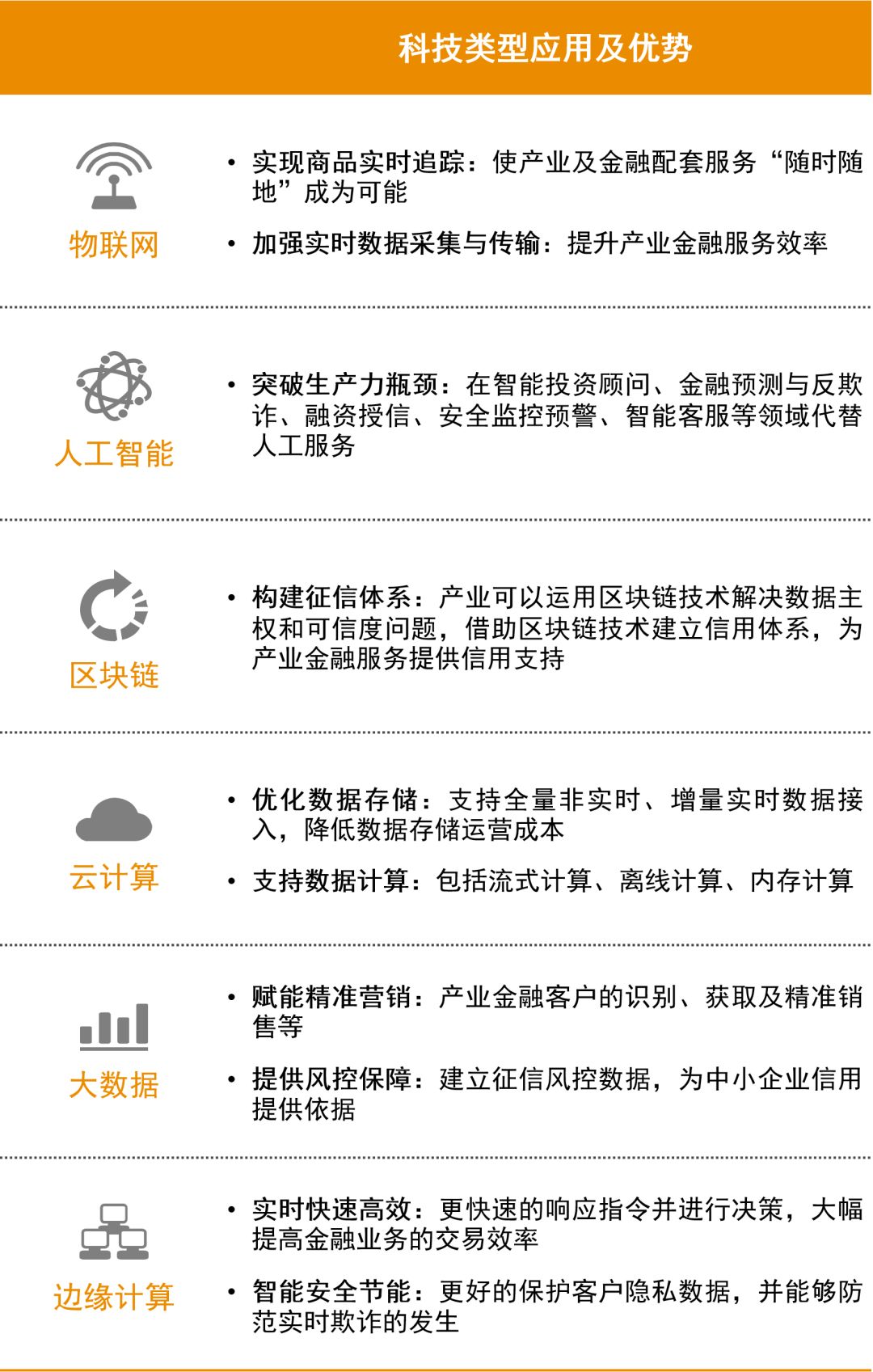 以iABCDE(物联网IOT、人工智能AI、区块链Block Chain、云计算Cloud、大数据Big Data、边缘计算Edge Computing)为代表的新兴技术在金融创新中扮演重要角色,驱动产业金融在各环节实现新突破,成为践行普惠金融、发展数字经济的新引擎。