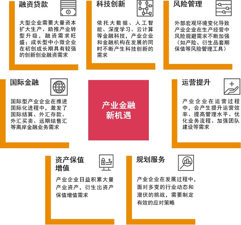 伴随我国企业日益增长的多层次融资需求、大量中小微企业亟待满足的贷款需求以及科技创新带来的金融机构创新需求,产业金融服务可以在“回归服务实体经济本源,主动防范化解金融风险”中大显身手。