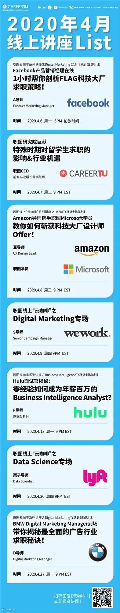 而机会永远留给有准备的人,在这样一段艰难的时期,职图依旧不断有学员逆流而上、弯道超车,拿到了梦寐以求的Offer!我们也特意准备了4月职图专场讲座,定向提升自己的专业能力!