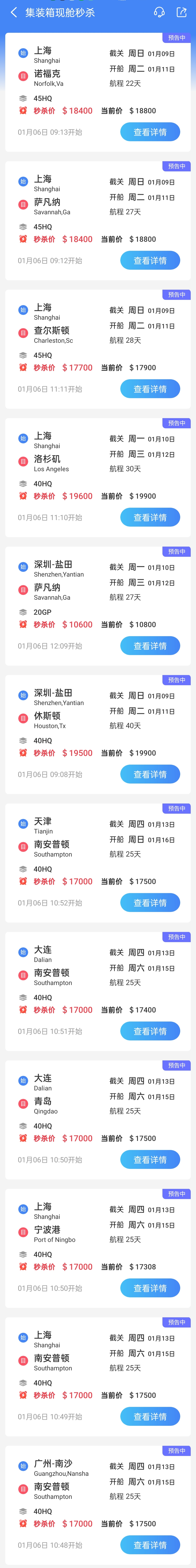 1/6最新舱位秒杀一览