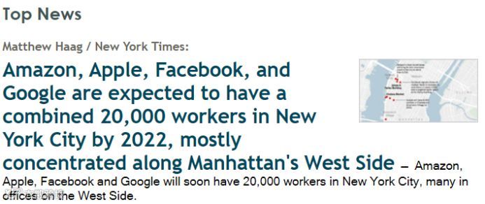 举个栗子:Facebook、Amazon、Apple、Google等科技巨头都已经纷纷官宣进驻纽约,并于2022年前,将在纽约扩招超过20,000人!