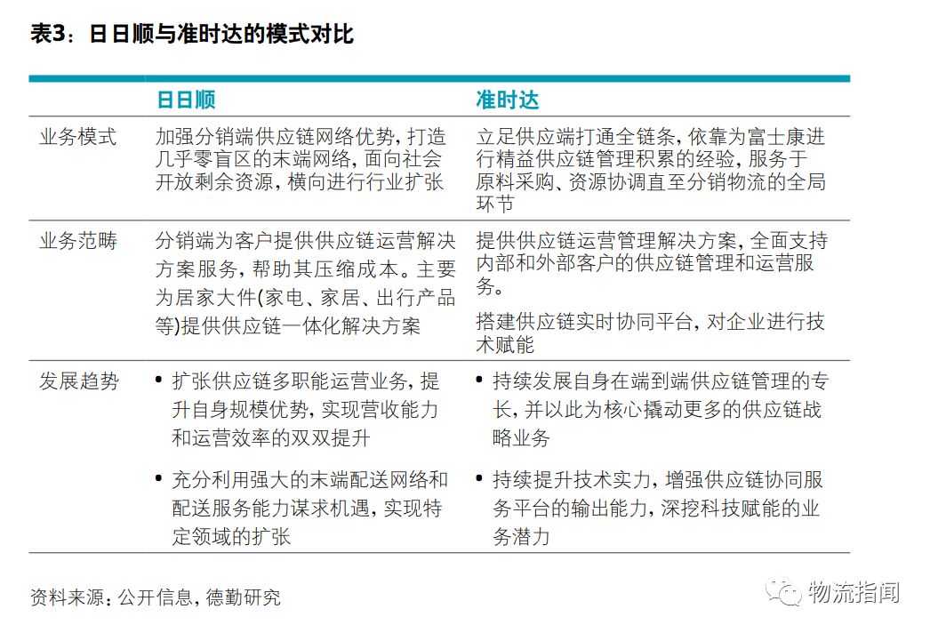 其次是提供依托优势的服务,比如准时达依托电子行业供应链服务领域多年的经验积累和全球化网络,构建其独有的C2M2C全球供应链协同服务平台,而日日顺则是充分利用其强大的末端配送网络和配送服务能力,进一步提升了网络的规模化效应。