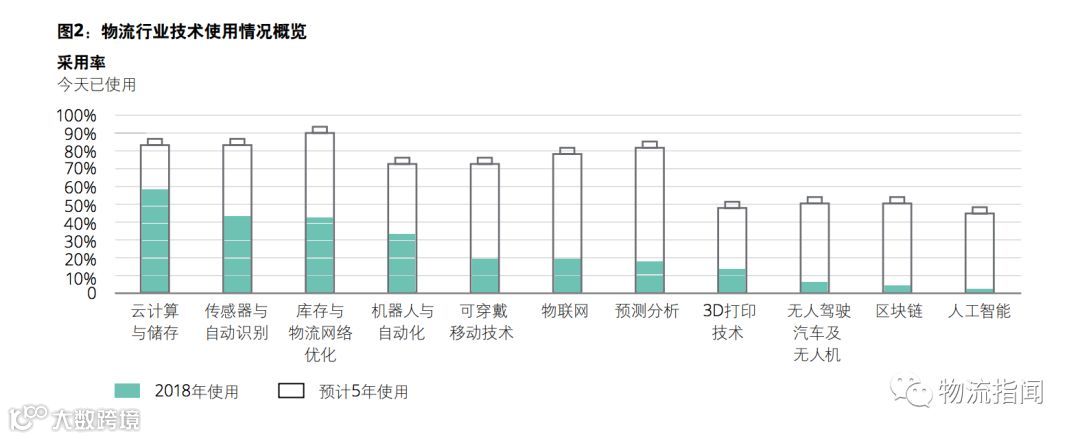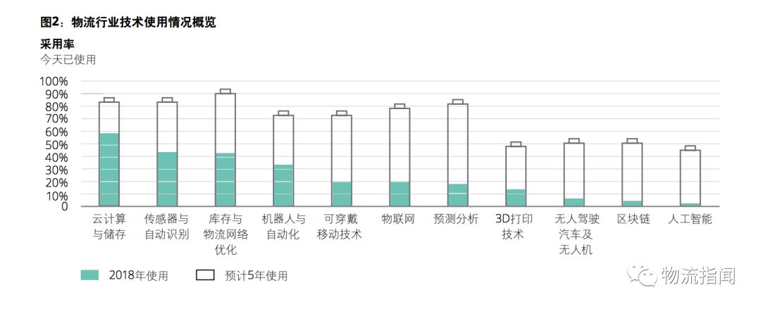 德勤全球预计未来十年影响物流业发展的关键技术将包括机器人和自动化、前景预测分析、物联网和传感器、人工智能、无人驾驶汽车和无人机等。其中,人工智能的重要性占比提升53%,无人驾驶则提升22%,均对企业供应链产生重大影响。