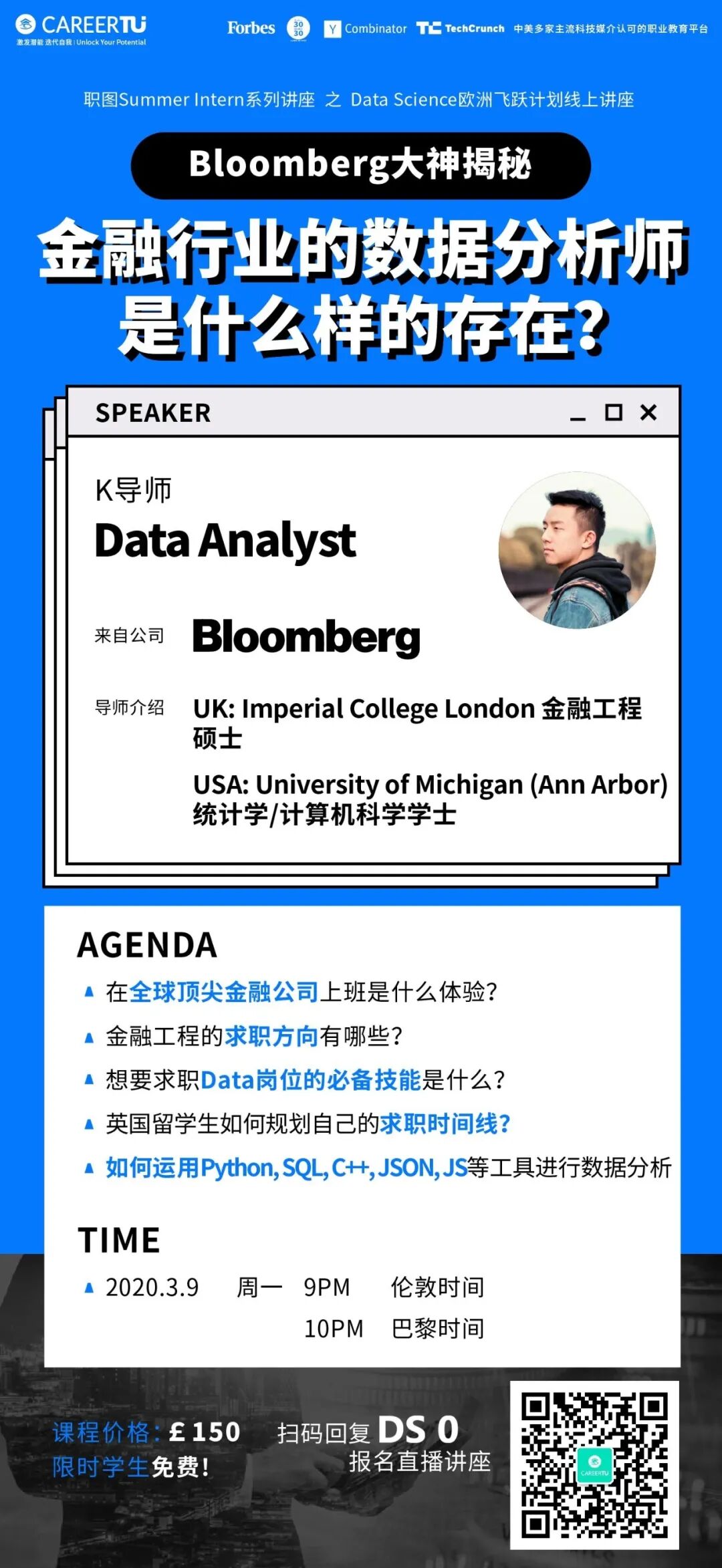 目前在亚马逊Amazon总部负责多个国家市场数据的整合、分析及可视化,建立以及优化预测模型,不仅拥有扎实的数据挖掘、统计等专业知识,并有优秀的沟通协调以及跨部门合作能力。